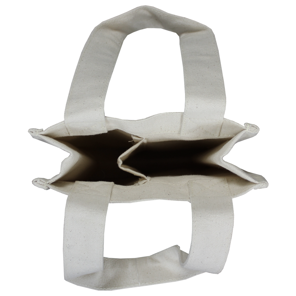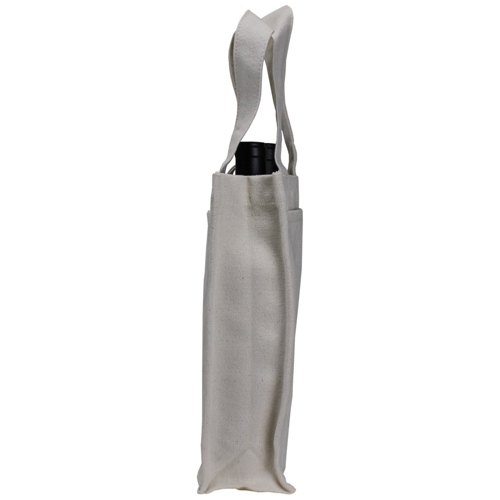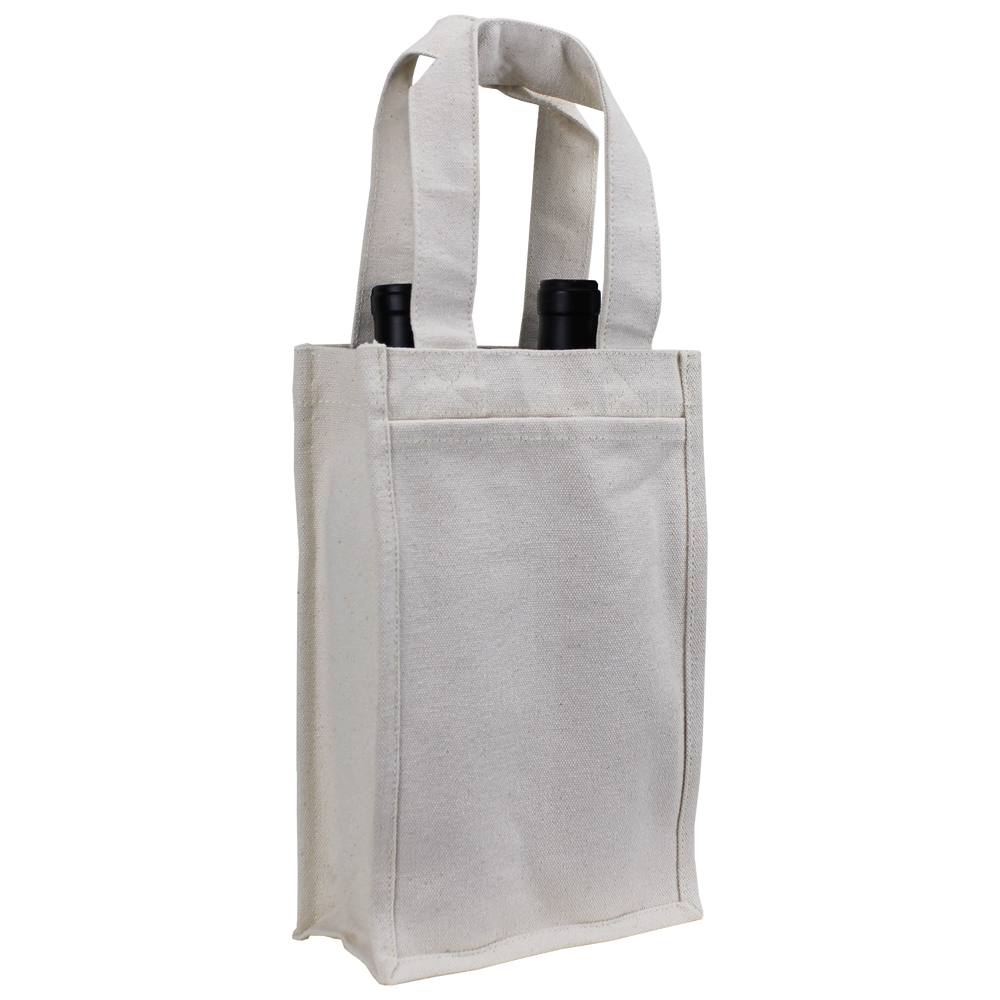 Made out of 14oz cotton canvas, this heavyweight wine tote is designed to hold two bottles of wine securely. With a sewn in divider and two outside pockets, the Heavyweight 2 Bottle Wine Tote can hold two bottles of wine and any pamphlets or literature that you would like to include in the pockets. A low wholesale pricing is available to anyone who can reach the low minimum order amounts.