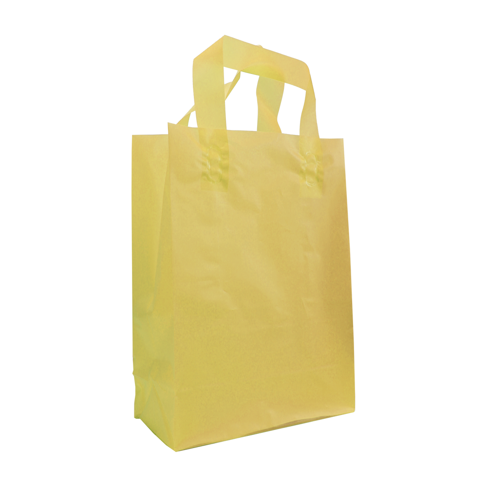 Our Small Frosted Plastic Shopper is a not-so-basic, but affordable bag you can provide to your customers. Made out of frosted high density film for a strong & sturdy carry. This plastic shopper bag comes with soft loop handles for easy transport, securely attached to the body of the bag, and a bottom insert for extra stability. This bag can be customized with a 5”W x 4”H, matte or metallic, foil stamp.